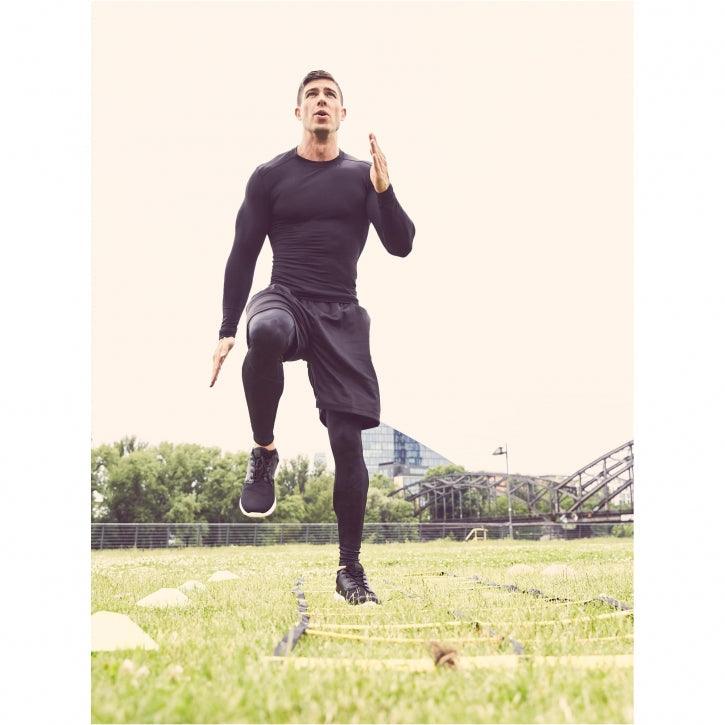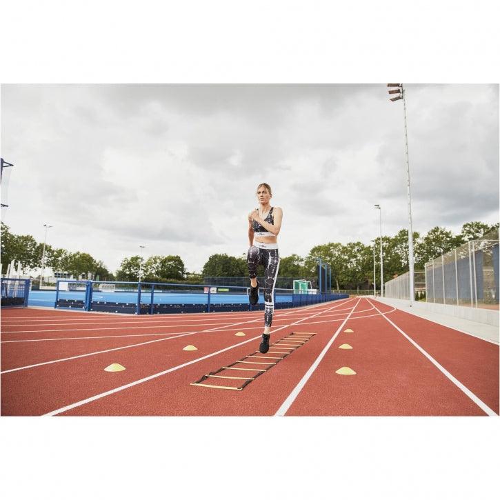 Speed and precision - that's what many sports are all about. Whether you want to train for football, martial arts or tennis, the yellow coordination ladder provides you with numerous effective exercise options. The ladder is rolled out onto the floor and serves as a boundary for your step sequences and jumps. You can run sideways, backwards or with steps to the sides. Start slowly to practise the steps and gradually increase the speed. Race against the clock or compete with your team-mates. It's a lot of fun and will help you progress in terms of speed and skill.