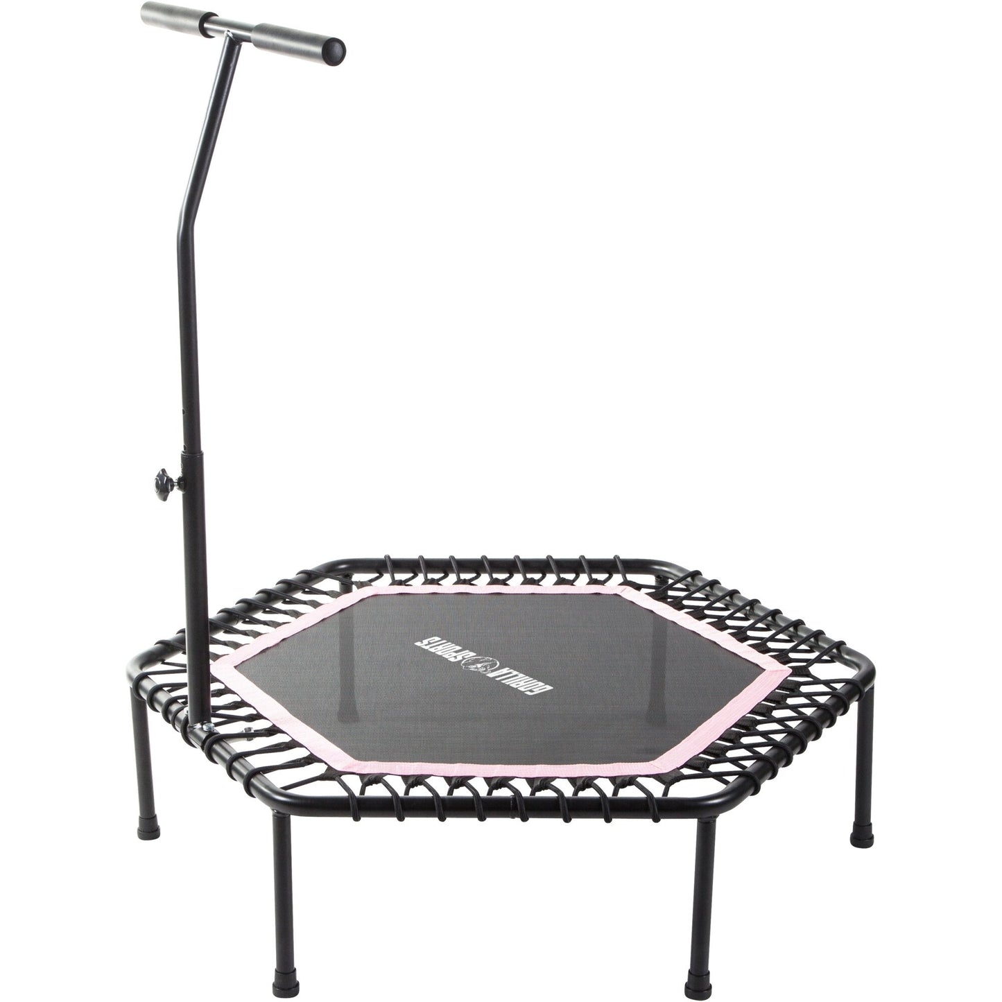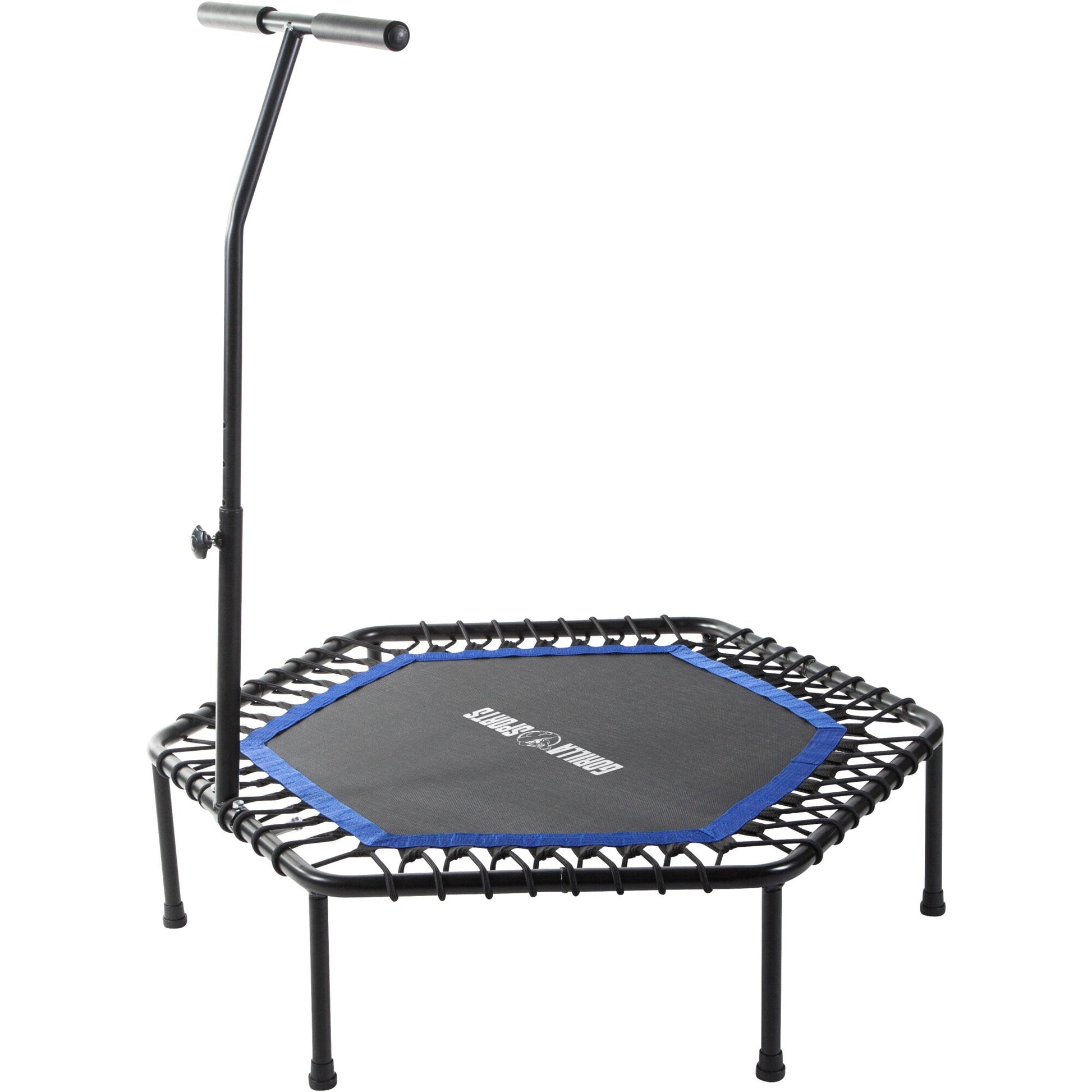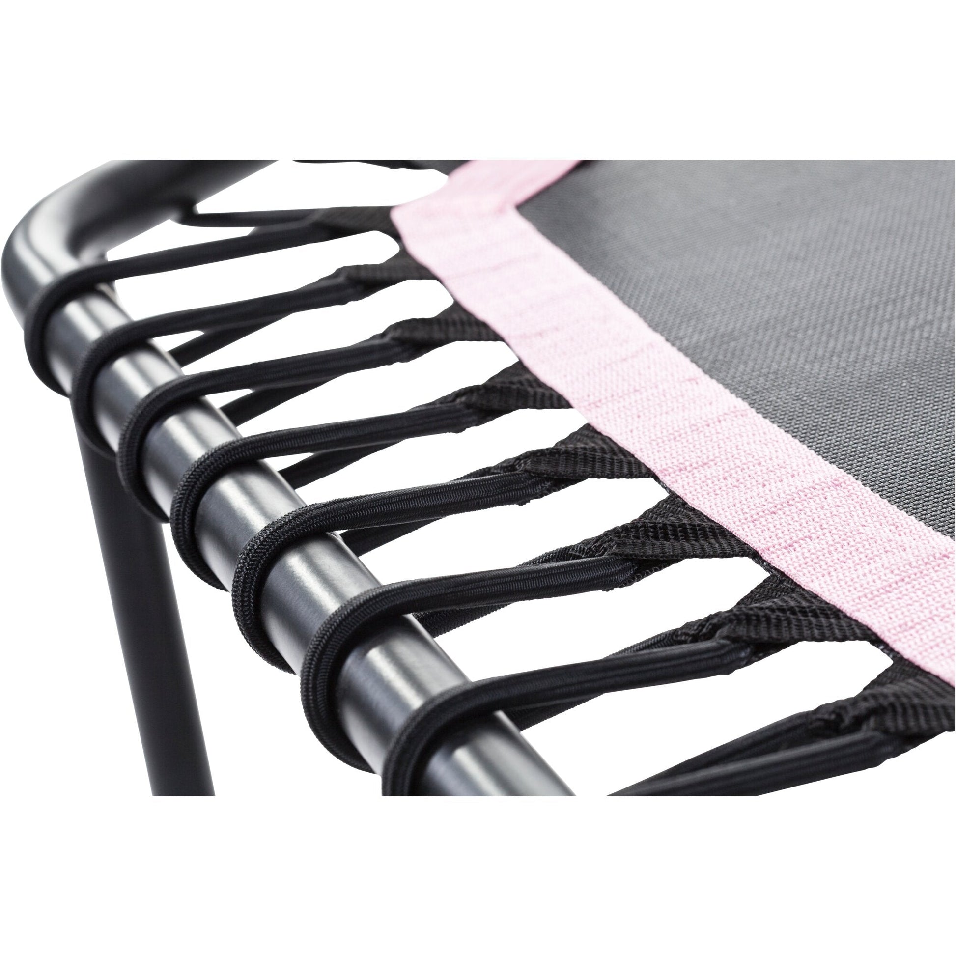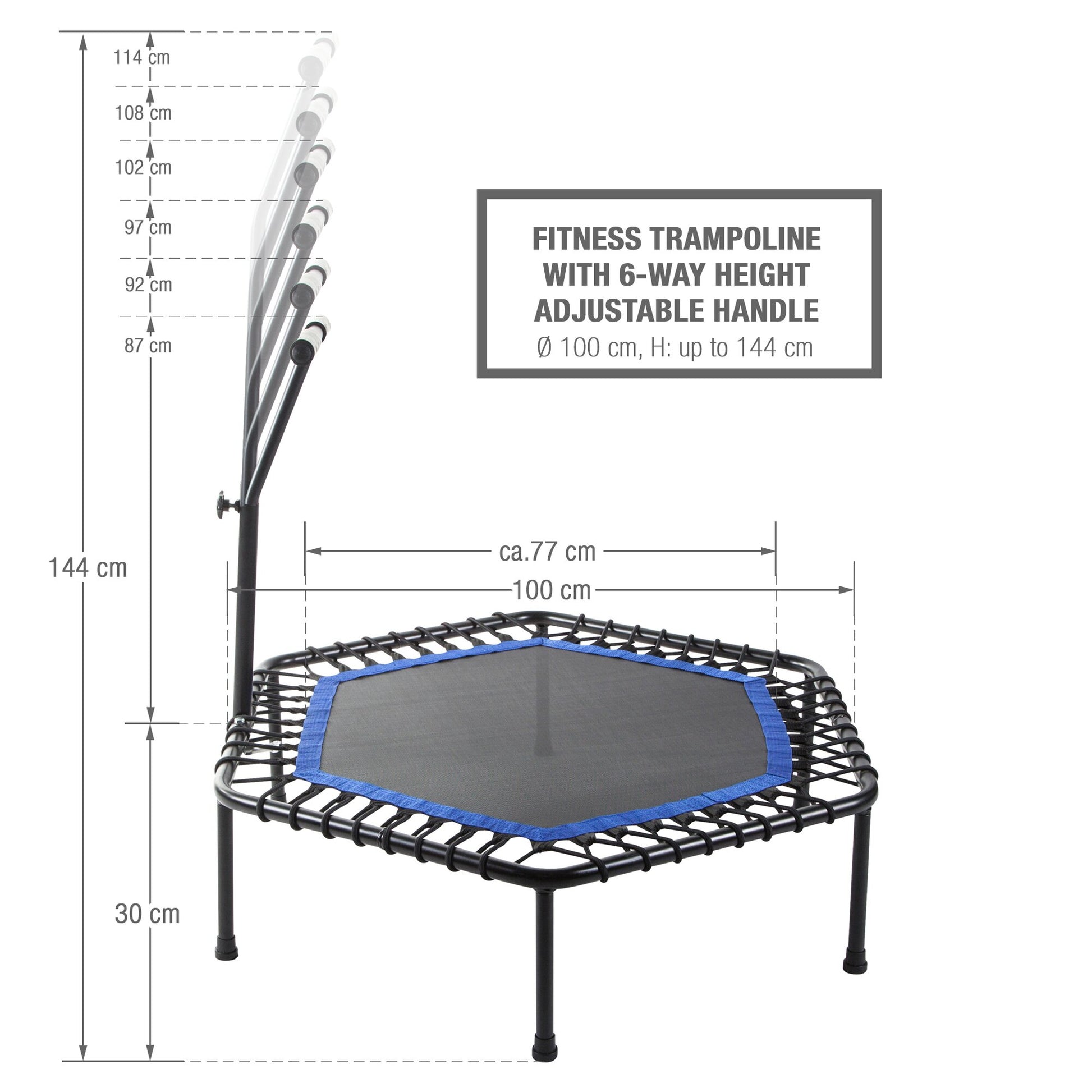 With the high-quality Fitness Trampoline from Gorilla Sports, you can literally jump on the jumping fitness trend. It's a lot of fun with your favourite music while you increase your fitness and endurance, improve your jumping power and stability and train your whole body. The edging of the hexagonal jumping mat in orange, blue or pink provides visual orientation and harmonises with the black of the trampoline.