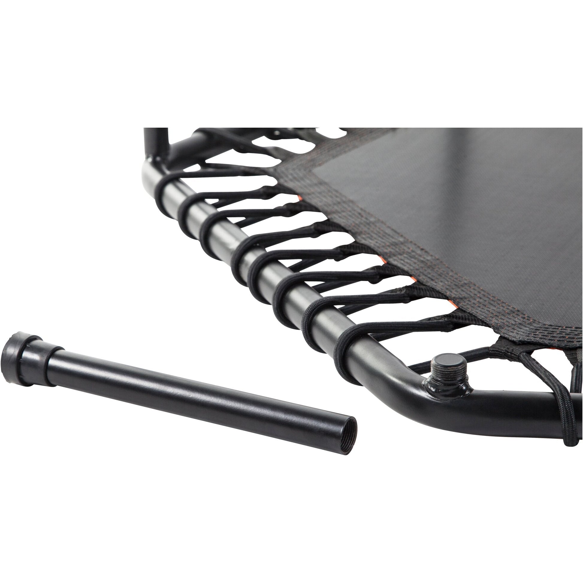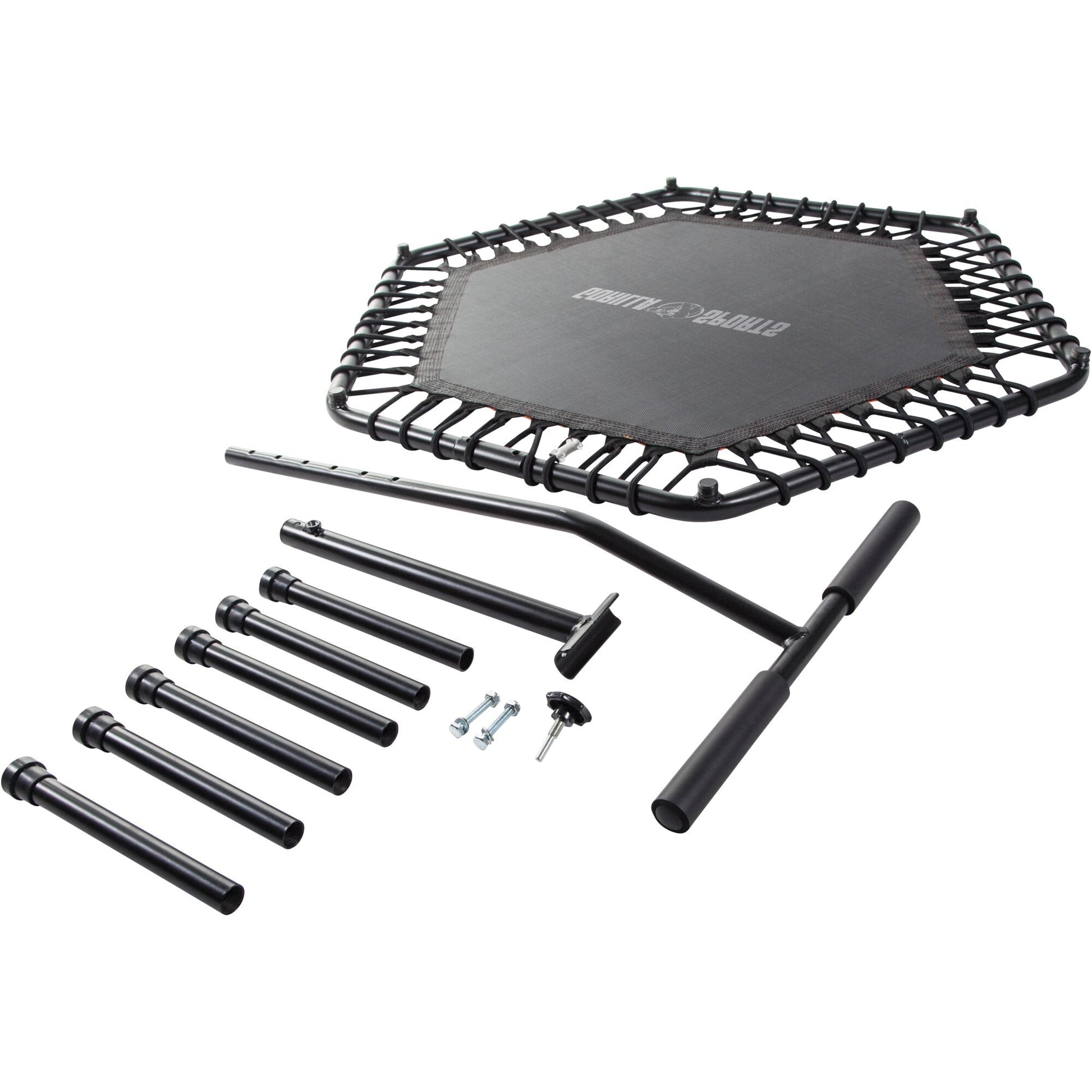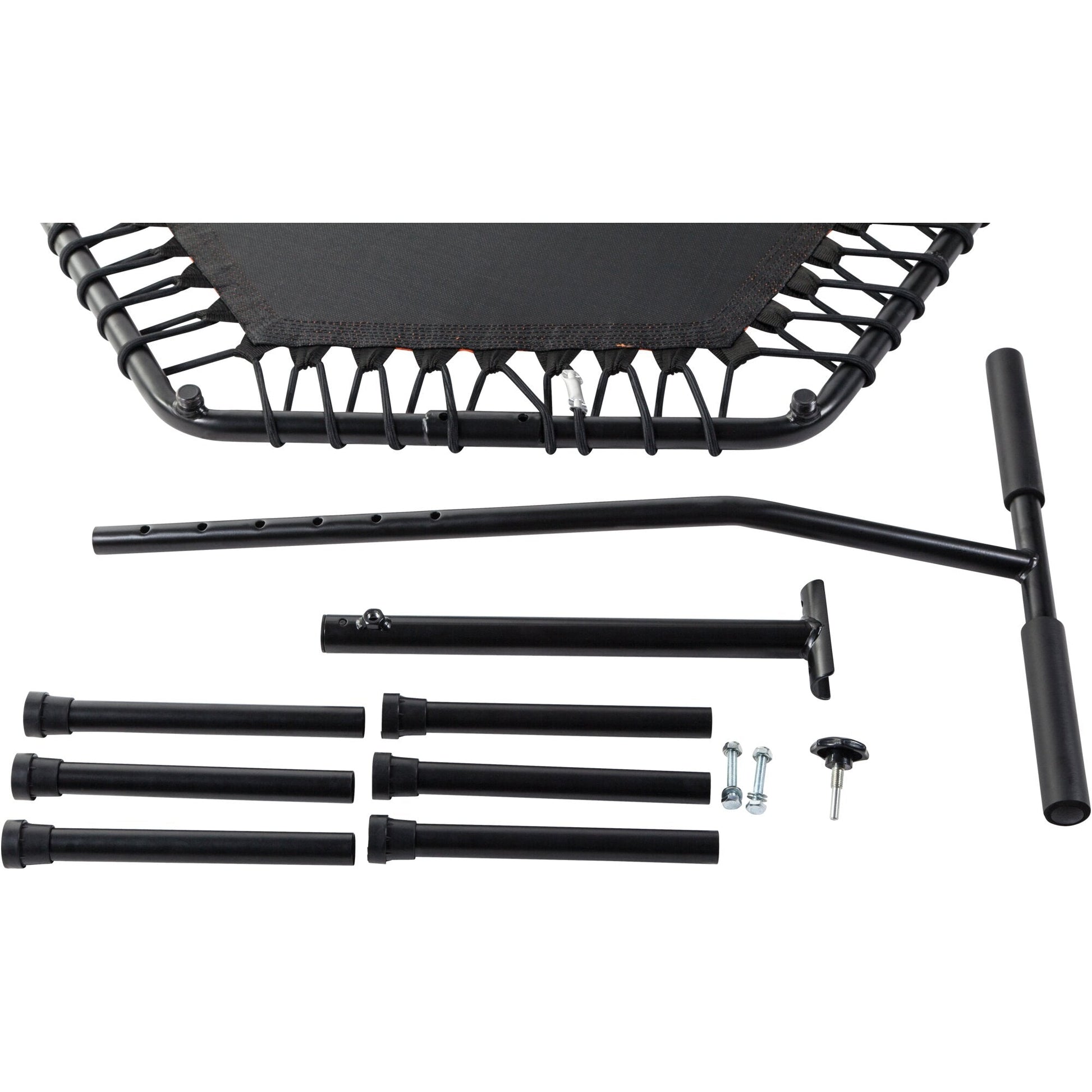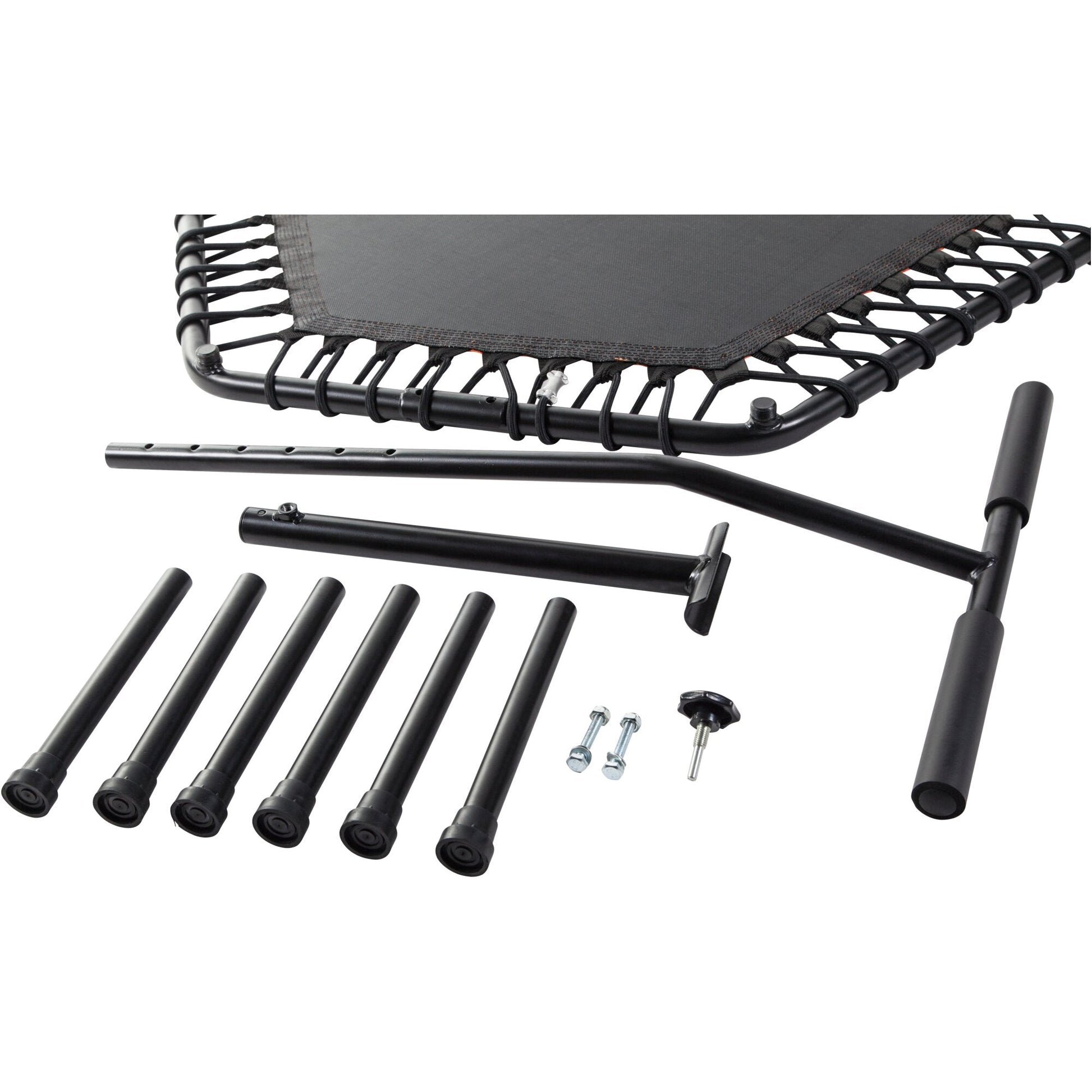 The Gorilla Sports Fitness Trampoline offers a versatile and effective workout right in your home gym—no travel required. Its rubber rope suspension system ensures a low-noise, joint-friendly experience, while the six height-adjustable support bars with a handle provide customised stability and comfort. Whether you're a beginner focusing on endurance training or diving into high-intensity jumping to burn calories, this sturdy and adaptable trampoline is perfect for every fitness level.