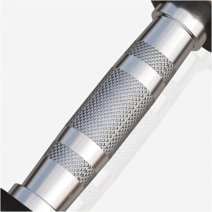 - Dumbbell bar: chrome-plated, ribbed handle with a length of 13 cm for a secure grip