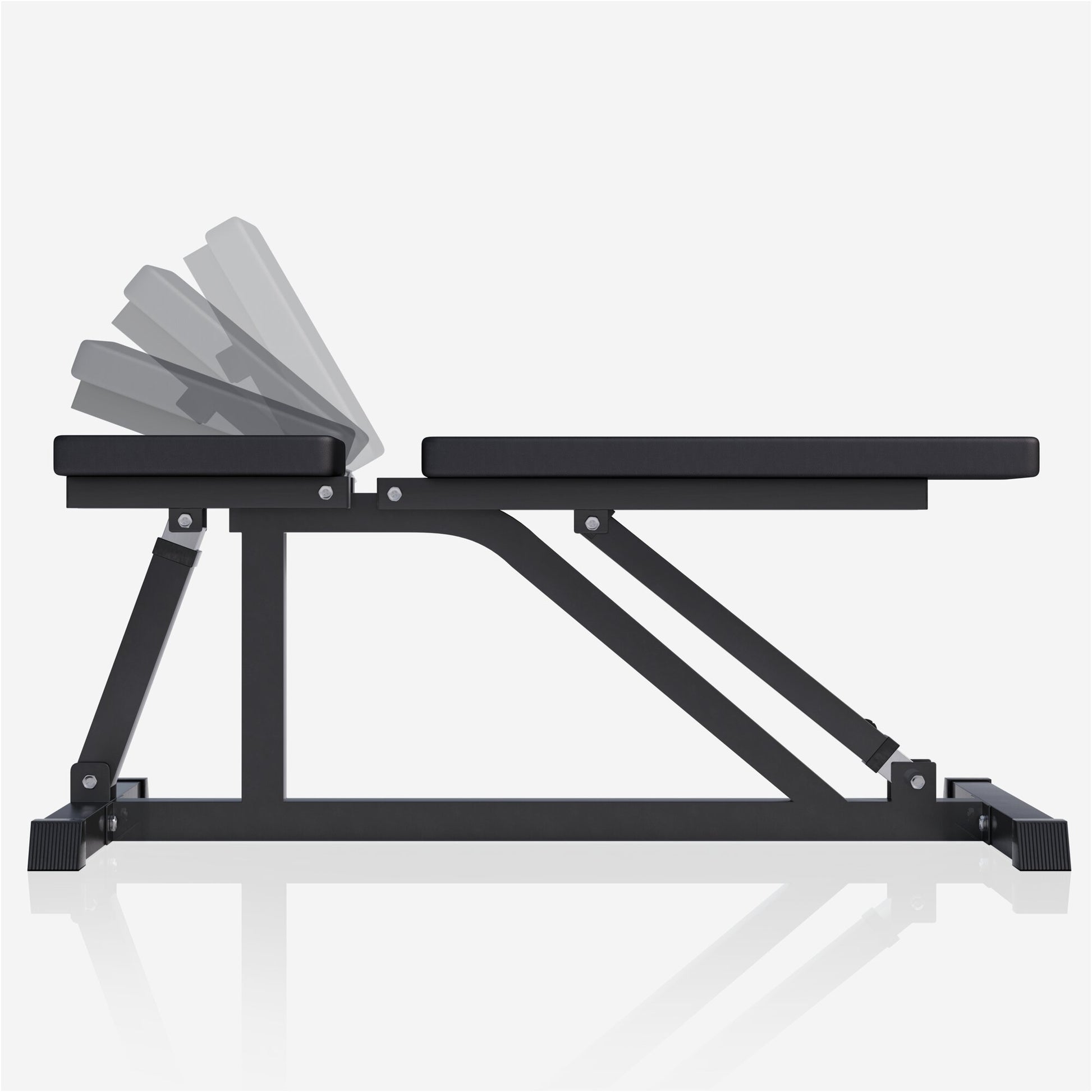 The adjustable angle of inclination of the backrest and seat cushion gives you full control over your workout. The bench adapts to your needs, not the other way round. Our quick-locking bolt is extremely secure and ensures you find the perfect angle with just one simple adjustment. The rubber feet protect the floor and provide extra stability so that this bench stays in place even during intense workouts. The bench is available in elegant black or pristine white. Assembly instructions are also included.