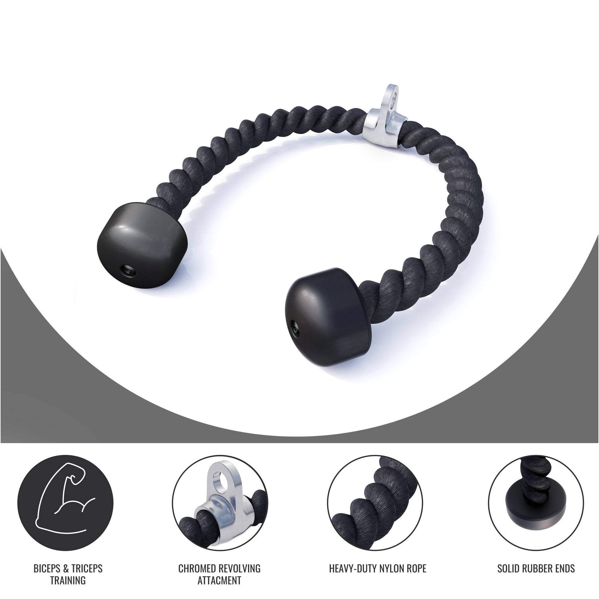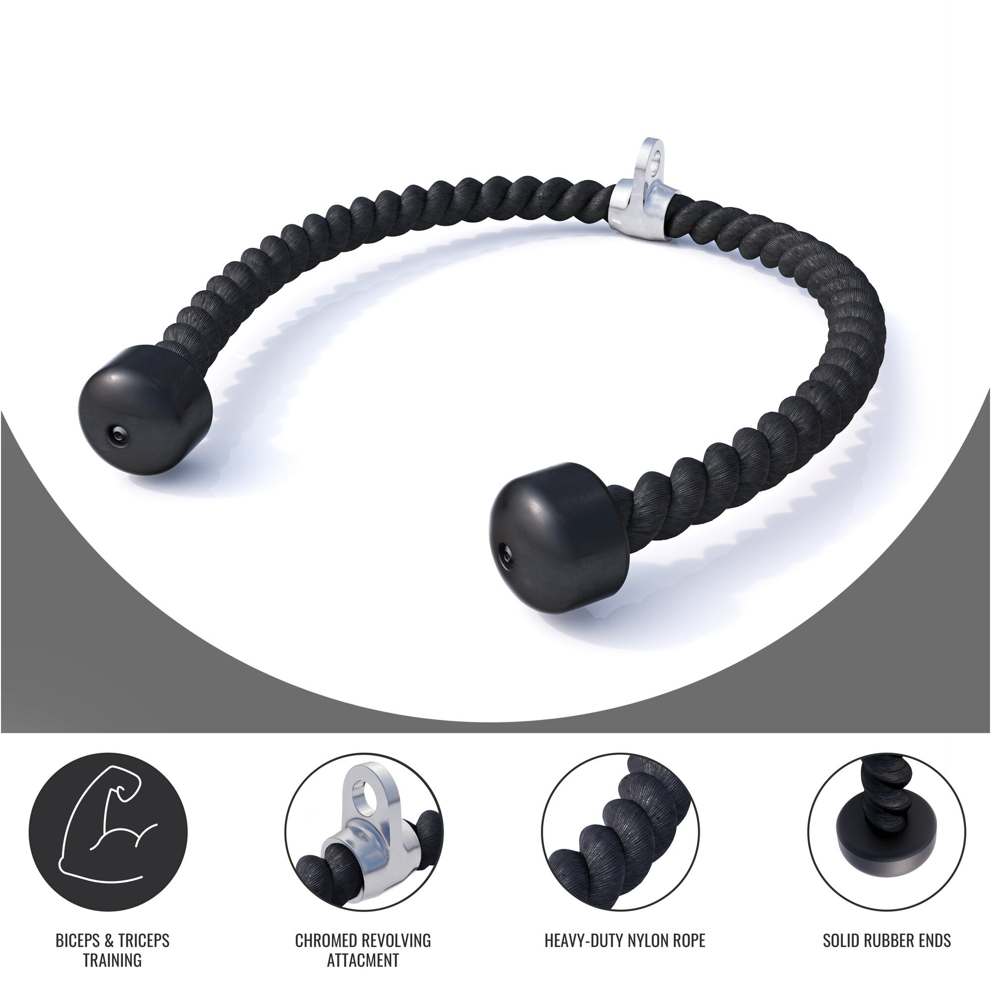 - Flexible rope for triceps, biceps, and core exercises