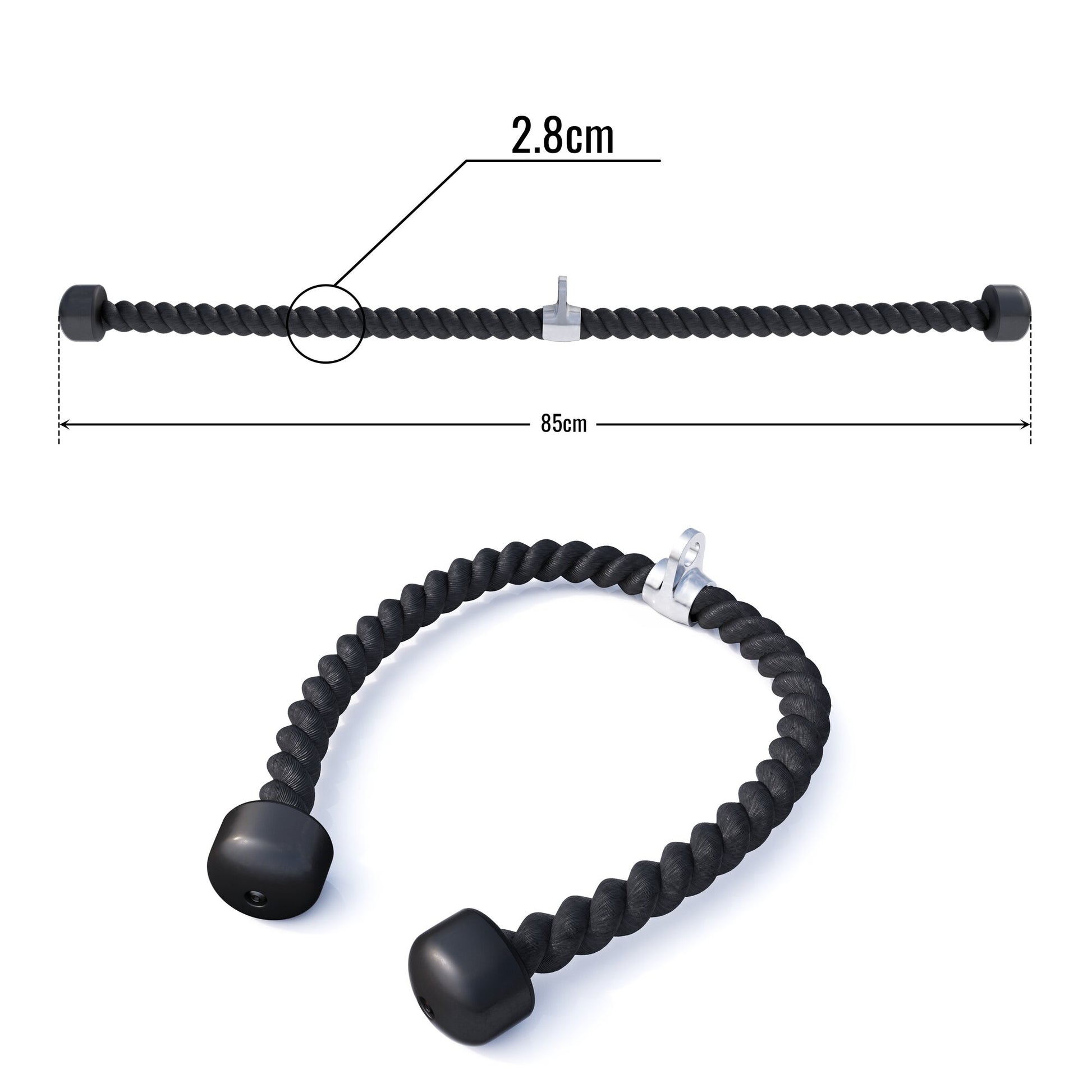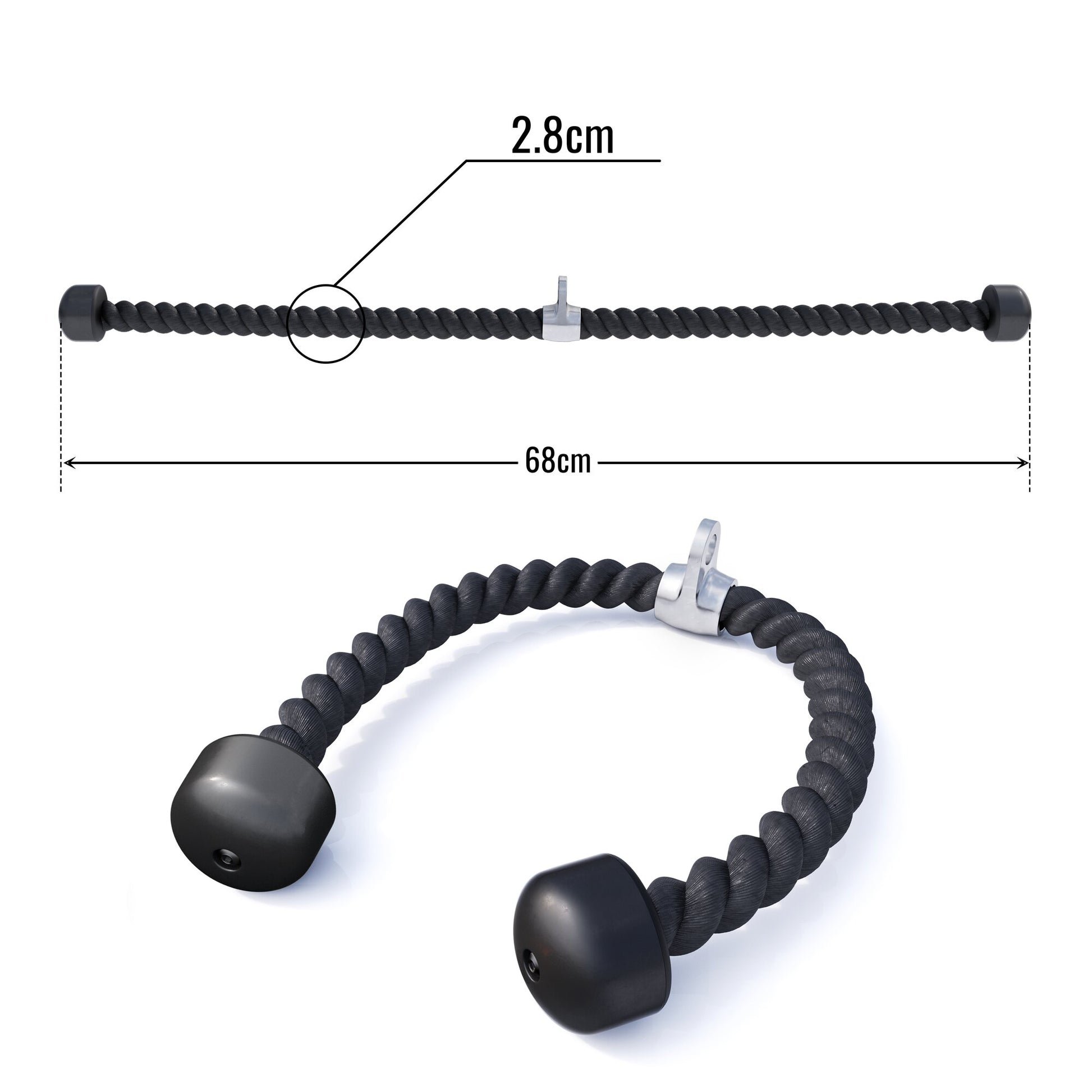 For the classic French Press and many other exercises that work your triceps, the nylon rope with the chrome joint is a convincing choice. But our rope with lengths of 68 cm, 85 cm and 100 cm can do so much more! Thanks to the flexible handle, you can even perform abdominal exercises by standing at the station and pulling the rope over your shoulders.