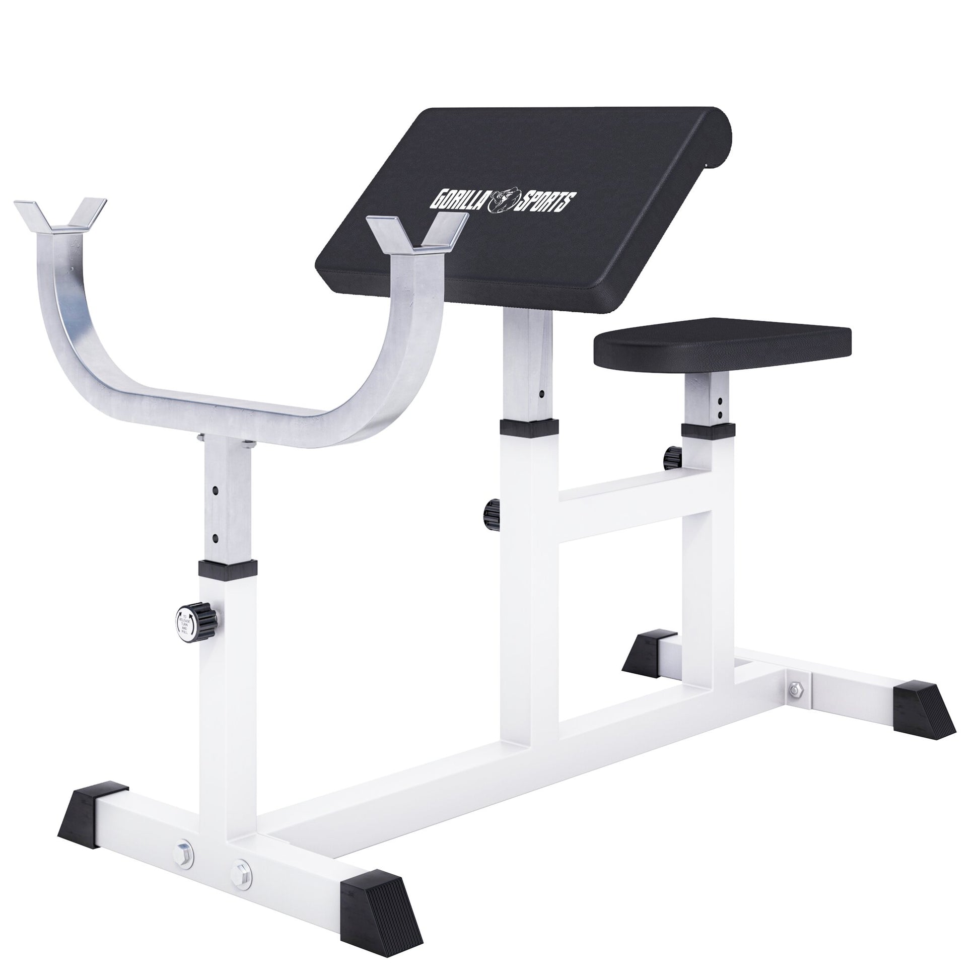 The Preacher Curl Bench in White from Gorilla Sports at a Glance