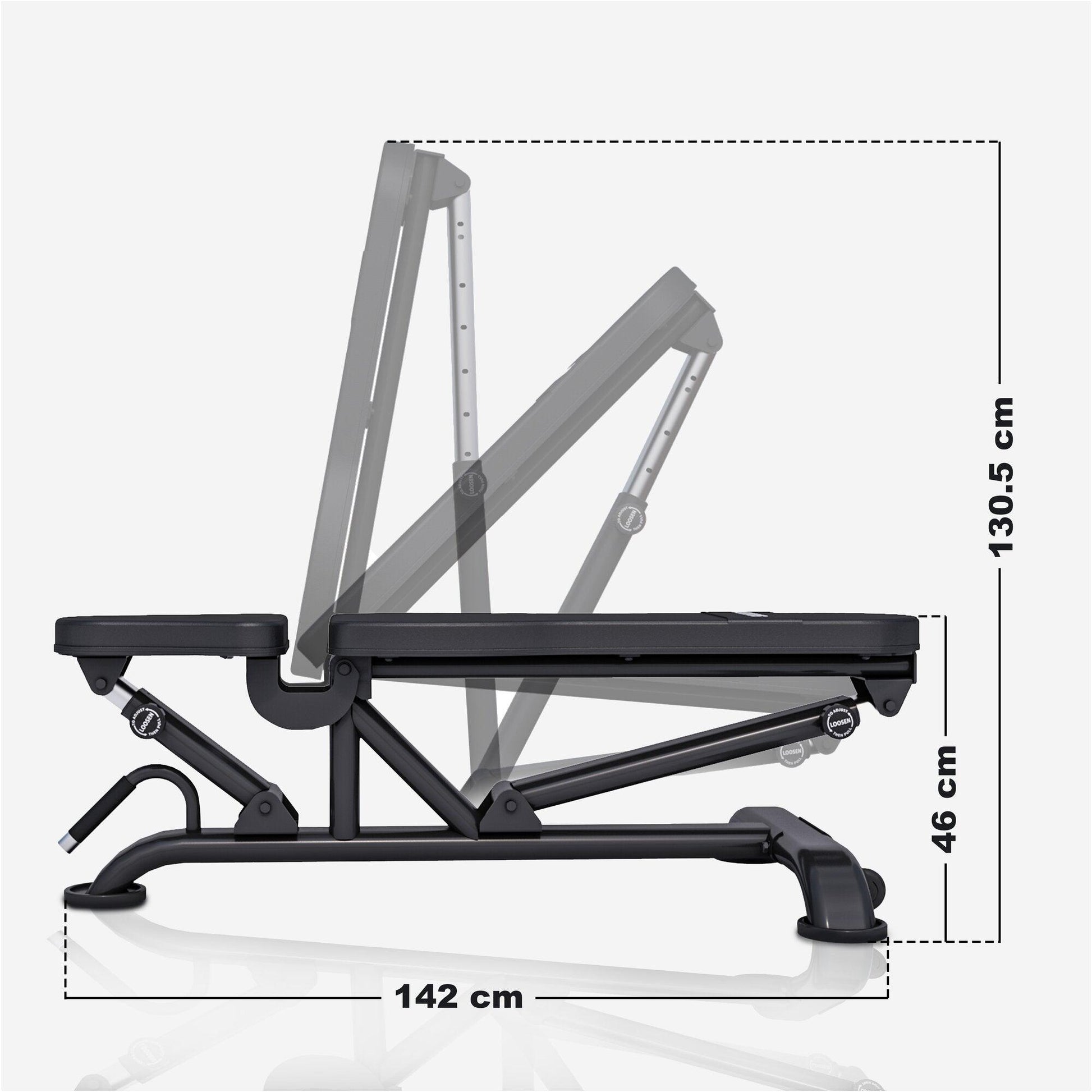 Our high-quality, studio-quality bench has a sturdy steel frame construction that can hold up to 300 kg and offers you the safety you need to push yourself to your limits.